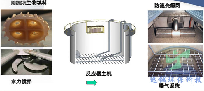 MBBR技术的关键在于研究开发了比重接近于水,轻微搅拌下易于随水自由运动的生物填料,它具有有效比表面积大,适合微生物吸附生长的特点,适用性强,应用范围广,既可用于有机物去除,也可用于脱氮除磷。